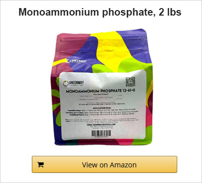 You can find monoammonium phosphate (MAP) in gardening stores as a fine white powder. Sometimes, it’s also called ammonium dihydrogen phosphate (ADP). If you can’t find it, you can order some online.